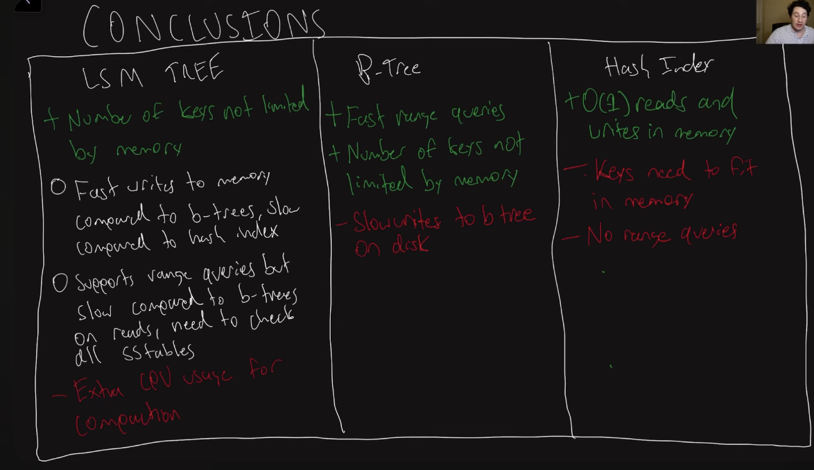 - LSM Tree + SSTable indexes