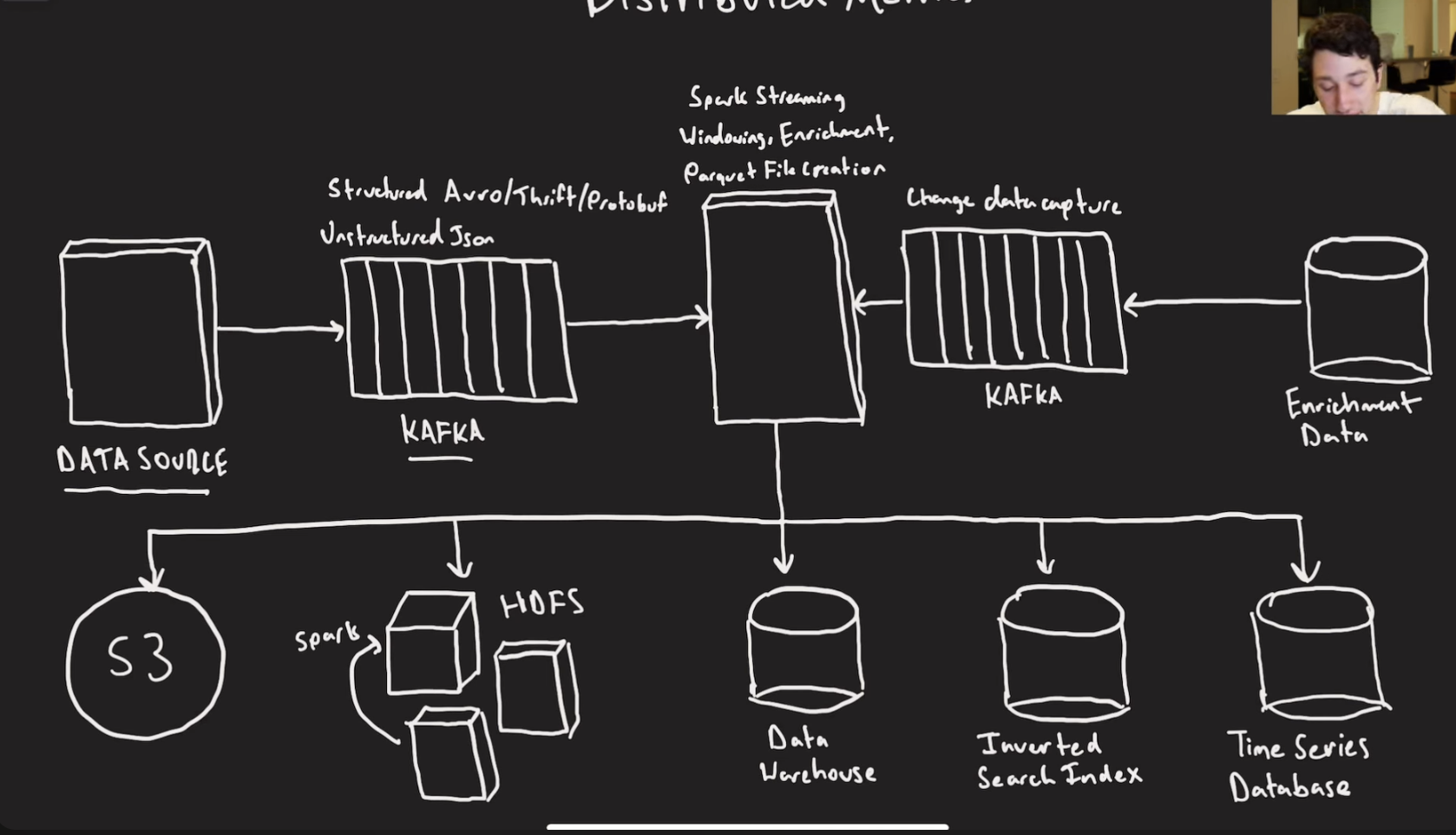 For unstructured Data: we can aggregate in flink to a file and dump it in HDFS and run a spark job to structure the data.