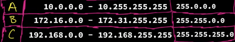 basically an agreed upon standard that sets aside a number of IP addresses as private IP addresses. Meaning that they don’t connect you to the internet and are only accessible by local network. These addresses include: